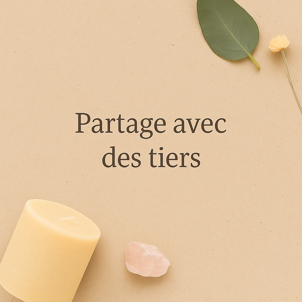 Je ne vends, ne loue ni ne partage jamais vos données personnelles à des tiers, sauf si cela est nécessaire au bon fonctionnement du service (livraison, paiement, etc.).